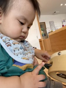 これはなんだろう・・・ここを触ると音が鳴る・・・?♪と観察中。