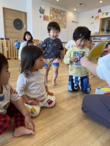 園見学で見たことはあったけど、保育園に入ってからは初めて参加する0歳児クラスのお友だち。