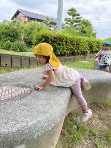 自分で登れると嬉しい!この表情から楽しさが伝わってきます。