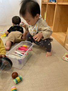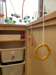 0歳児クラスのお部屋にお邪魔しました!このお部屋にも手作りおもちゃがたくさん♪