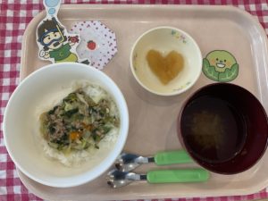 さっそくかおり先生、ともか先生がみんなのお給食で調理してくれました♪