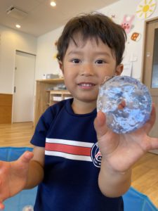 氷が解けて中に入っていたキラキラの石が見えてくると、取り出したいけど中々取り出せないというもどかしい時間も真剣な顔で楽しんだ様子のお友だちでした♡