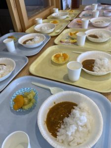 紙皿やプラスチックスプーンなどいちもとは違う食器だったこともあり、少しドキドキしている様子もみられましたが、みんなで美味しく食べきることができました(*‘ω‘ *)