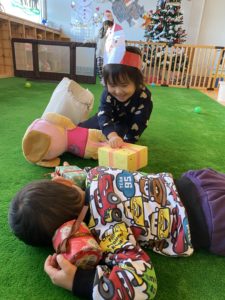 先日ブログでもご紹介したリースづくりやソリ遊び、サンタさんになりきったごっこ遊びなどをして子どもたちはクリスマス気分を盛り上げています(*^^*)
