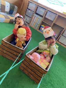 「さてさて、箱の中身はなんだろ~??」と想像力をはたらかせるお友だち。