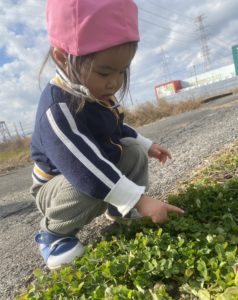 いつもと違う場所でオレンジ色の電車を見て、お花探しも楽しめたステキなお散歩になりました(*^^*)