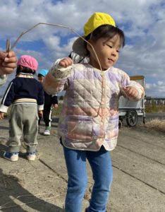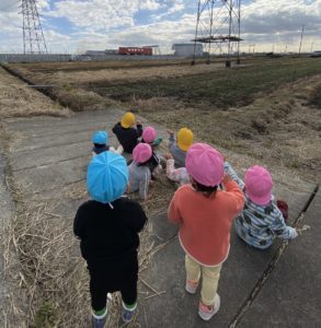 先週の金曜日、子どもたちは樽見鉄道の見える踏切方面へお散歩に行きました。