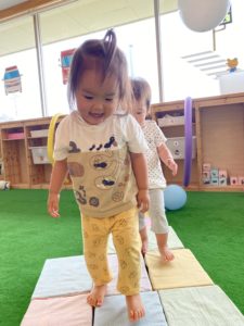 他にもふうせんで遊んだり、BOXの上を歩いたり、体を使って遊んでいました(^o^)