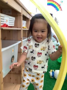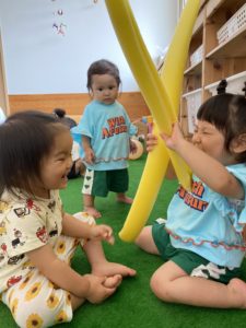 くぐったり、おばけごっこが始まったり、おともだちと一緒に遊ぶ様子がみられました。