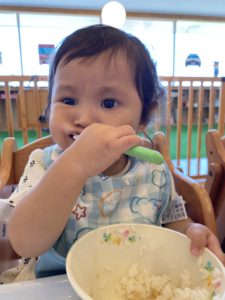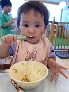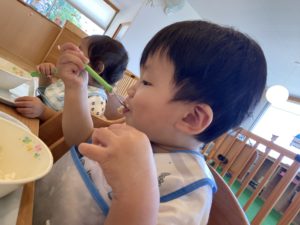 4月に入園したうみ組の二人は給食が大好きです!