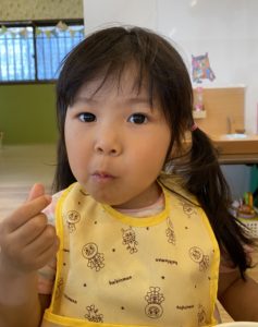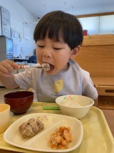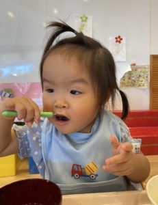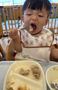 そら組(1歳児クラス)の子どもたちも食べるのが上手になってきました。