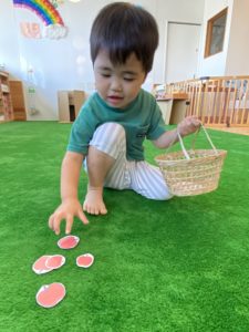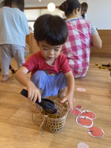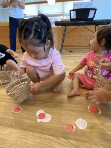 9月のリトミック~秋の遊び・栗とリンゴ拾いを楽しみました♪~