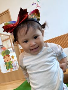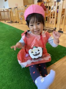 みんな朝から先生に「ハッピーハロウィン♪」と声をかけてもらってウキウキ気分です(*^^*)