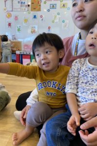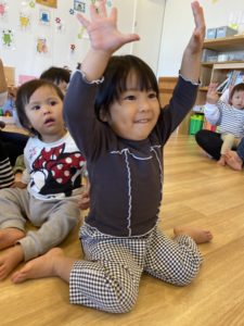 そら組(1歳児クラス)、にじ組(2歳児クラス)の子どもたちは最初の歌も身振り手振りで元気よく歌います(^o^)