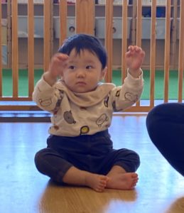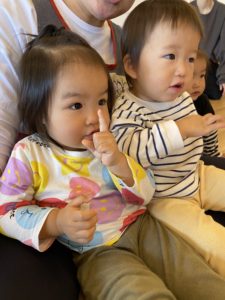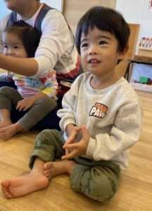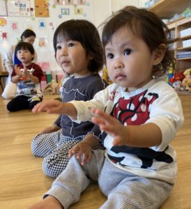 うみ組(0歳児クラス)の子もおともだちの様子を見て一緒にリズムをとっていました(^^♪