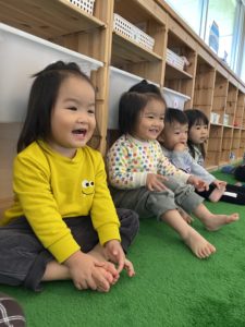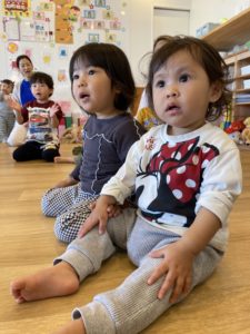 朝、ポカポカの床にみんなで座って先生のお話を聞きます。