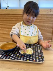 先生に今日はおだんごを好きな形にしていいよ!と聞いて作り始めました。