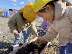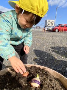大きくなってねと願いを込めながらチューリップを植える優しい子どもたちの姿に、きれいな花を咲かせてくれるのが今から楽しみですね♪