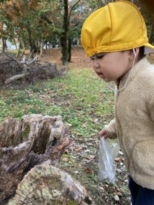 「緑のね、綺麗なのあったの!」とお友だちと教え合いながら、秋の最後のお楽しみをしっかり味わってきました!