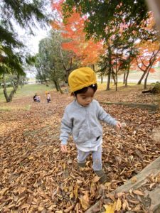 落ち葉のじゅうたんの上を歩くだけでも、子どもたちはとっても嬉しそうでした(^^♪