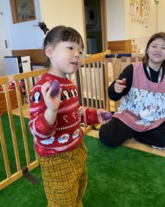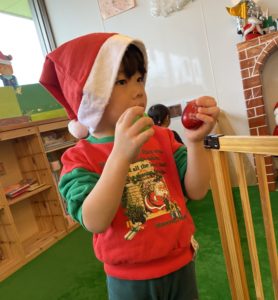 飾り付けの後はみんなでたまごマラカスで「赤鼻のトナカイ」を歌って踊りました♪