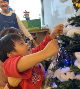 大きなツリーはみんなの作ったツリーでいつもより豪華に見えました(^o^)