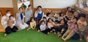 長いお休みだったので朝はお母さんと離れがたい子もいましたが、先生に抱っこしてもらって安心するとおともだちと元気に遊び始めました(*^^*)