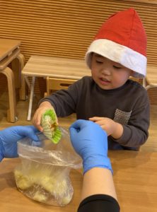 12月の食育はクリスマス会の日に「ポテサラリレー」をしました♪