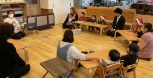 うみ組(0歳児クラス)→そら組(1歳児クラス)→にじ組(2歳児クラス)の順番でリレーをしました。