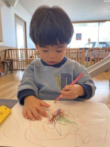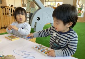 好きな色を選んで大きな紙に描くのが楽しいですね。