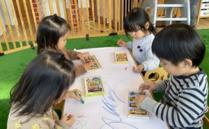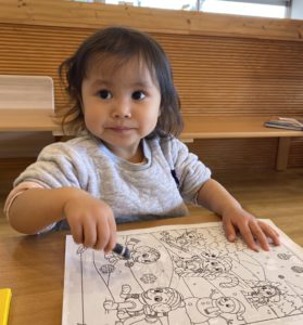 すべり台の後は少し落ち着いてぬり絵も楽しみました。