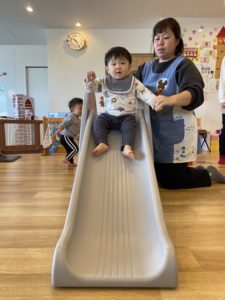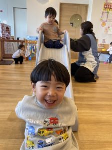 自由遊びを楽しんだ後、すべり台を楽しみました。