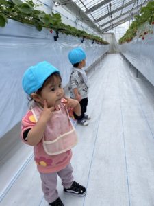 0歳児クラス(うみ組)のいちご狩りのようす~はなのかファームに行ってきました♪~