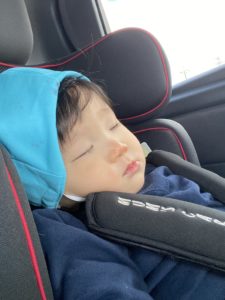 たっぷりいちご狩りを楽しんだので、帰りの車でうたた寝する子(*^^*)