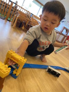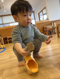 にじ組(2歳児クラス)のお兄さんたちが遊んでいるおもちゃはあこがれのおもちゃ♡