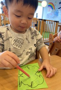 ペタペタ色が付くのが楽しくて夢中で塗る姿がなかなか様になっています。