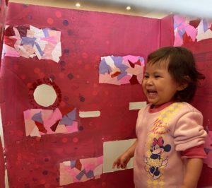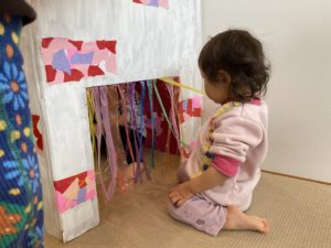 先生が作ってくれた段ボールのおうちでも遊びましたよ。