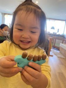 粘土遊びはみんなで並んで楽しみました。