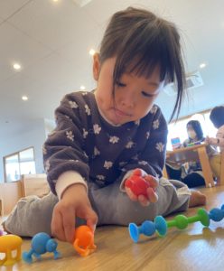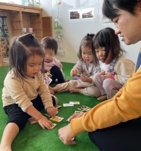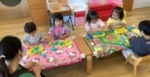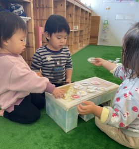 今日はそら組(1歳児クラス)のお部屋遊びの様子を紹介します。