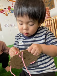 紐通し遊びも一生懸命にチャレンジしていましたよ♪