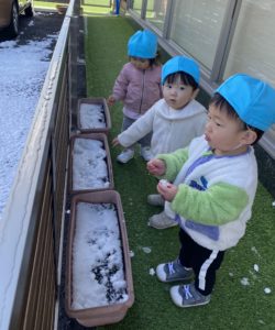 プランターの雪に手型をつけてみたり、雪を触って楽しみました。