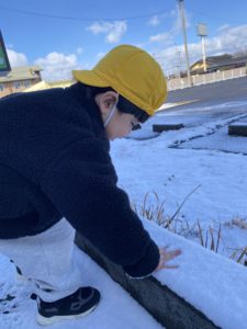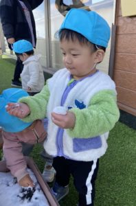 はじめは雪に触るのをためらっていた子も先生にさわらせてもらうと次は自分から触っていました(*^^*)