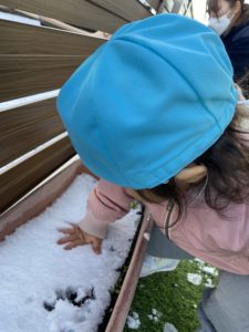 プランターの雪に手型をつけてみたり、雪を触って楽しみました。