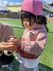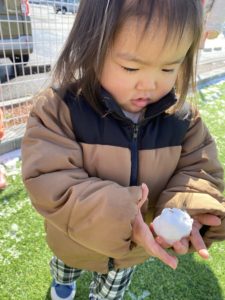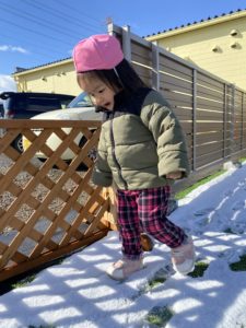 園庭の雪はほとんど溶けていましたが、それでも雪をみつけてその上を歩いたり、触って楽しみました(^^♪