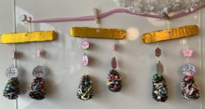 ひな飾りの後ろには子どもたちが作ったジャンボ松ぼっくりのおひなさまも飾られていました♡