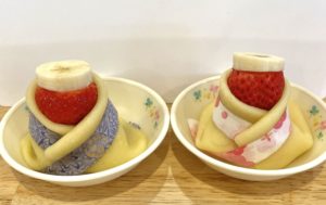 かわいいクレープのおひなさまにこどもたちもニコニコ。