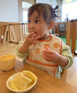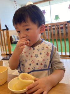 子どもたちはいつもと違うおやつを嬉しそうに食べていました(^o^)