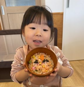 C-NOTE保育園のひなまつり~食育で三色丼のお手伝いをしました・おやつもスペシャル♪~