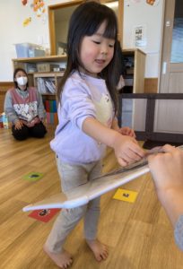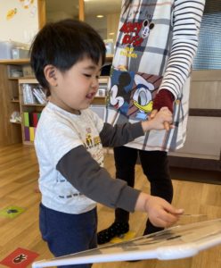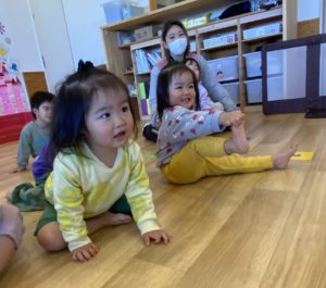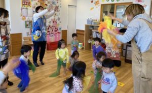 にじ組(2歳児クラス)の子どもたちは最後の英語教室です。