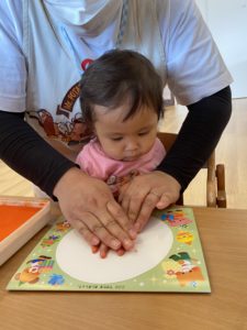お誕生日のおともだちは初めてのお誕生日カードの手形も上手にとっていました。